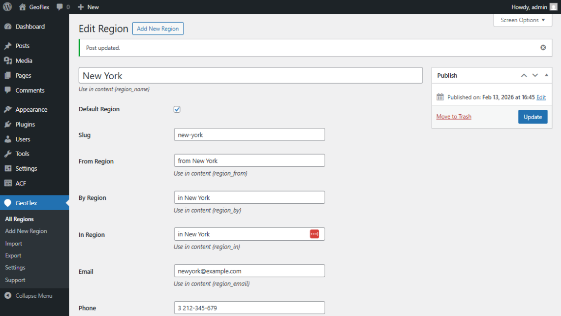 The plugin allows adding an unlimited number of regions. You can configure each region with unique content and settings.