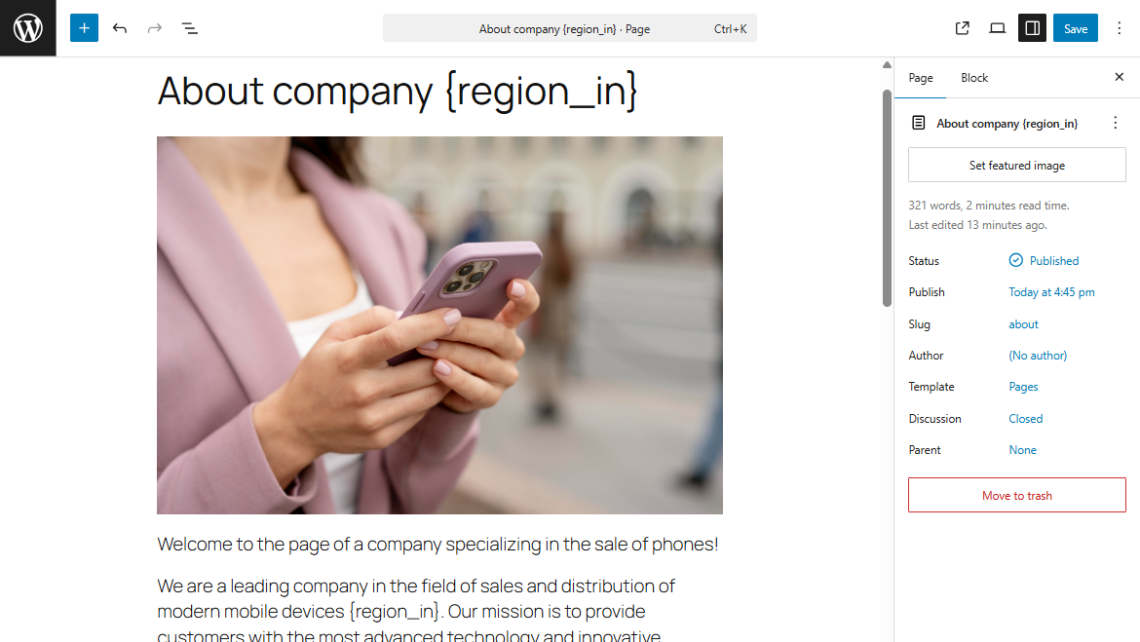 A WordPress plugin is an additional tool that adds specific functions or capabilities to your WordPress website. Our plugin specializes in content adaptation for different regions, which helps improve search engine optimization and attract target audiences.